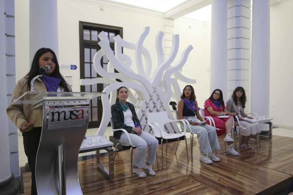 Daniela Martínez, encargada de Servicios Educativos del MUSA, agradeció el encuentro e invitó al resto de actividades de hoy y el fin de semana, e invitó a las mujeres que asistan al museo a que escriban, rayen o dibujen en una mampara instalada en el Patio del recinto, expresen su sentir acerca del 8M, para lograr una obra intervención gráfica colectiva. Para conocer a detalle las actividades del MUSA por el 8M se puede consultar aquí.